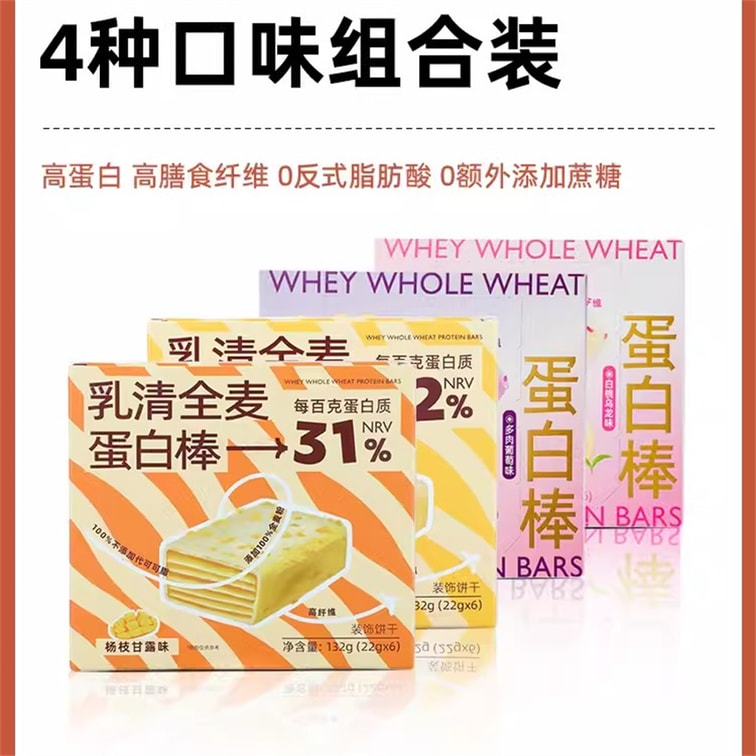 Whey Whole Wheat Protein Bar Meal Replacement Biscuit Energy Bar Poplar Branch Nectar 132g/ box