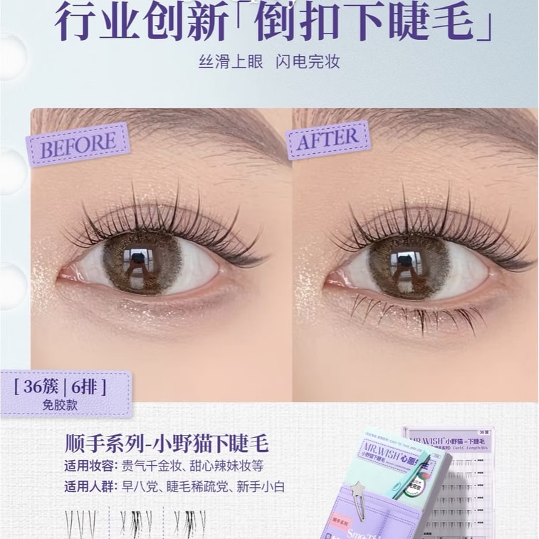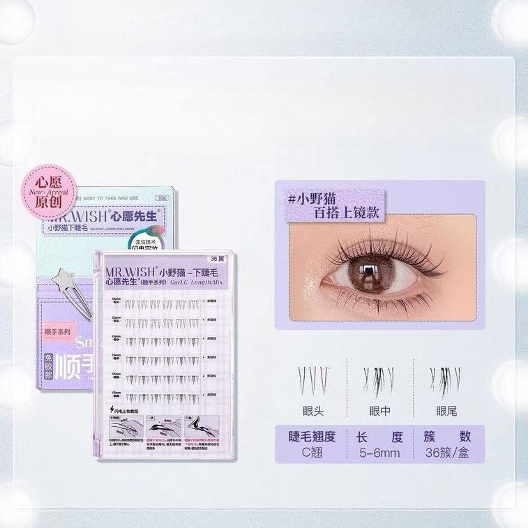 White Moonlight Glue-free Lower Eyelashes #Wild cat lower eyelashes 1pc