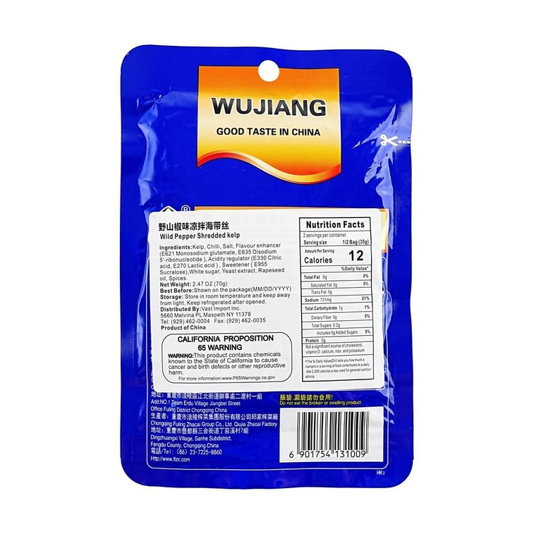 Wild Pepper Shredded Kelp ,2.46 oz *5【5 Packs】【Ready To Eat】【For Rice, Porridge and Noodles】