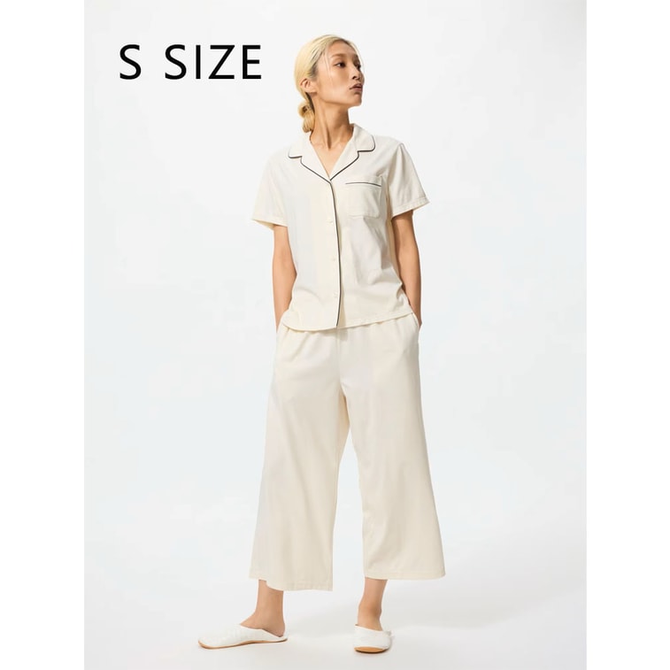Women’s Cooling Short Sleeve Cotton Pajama Set Off White Size S 1 Set | Yami