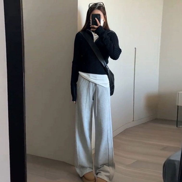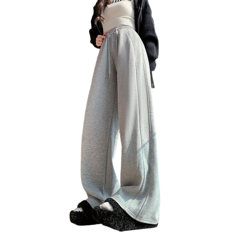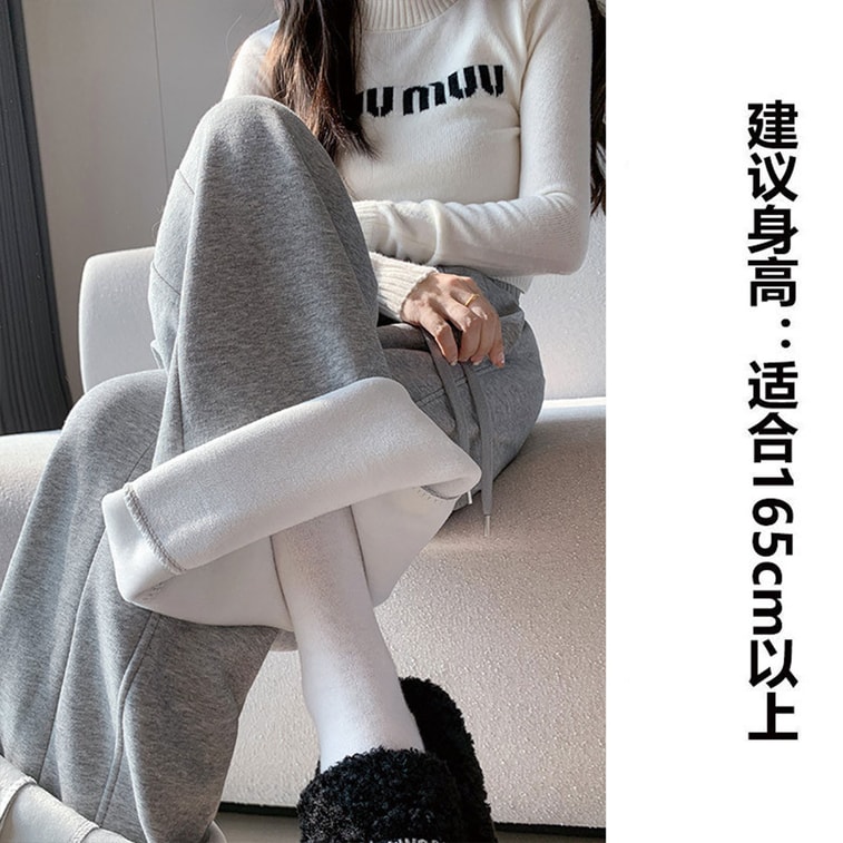 Women's Winter Lamb Fleece Narrow Wide Leg Pants Slim Casual Loose Sweatpants Light Gray Fleece Extra Long S 1 Piece