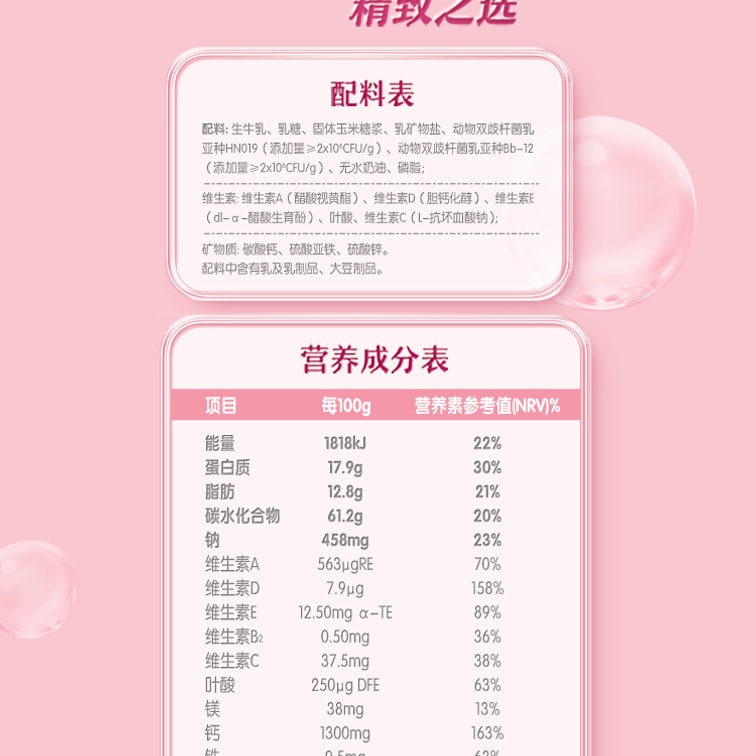 Women's high iron high calcium milk powder small portable 400g/ bag
