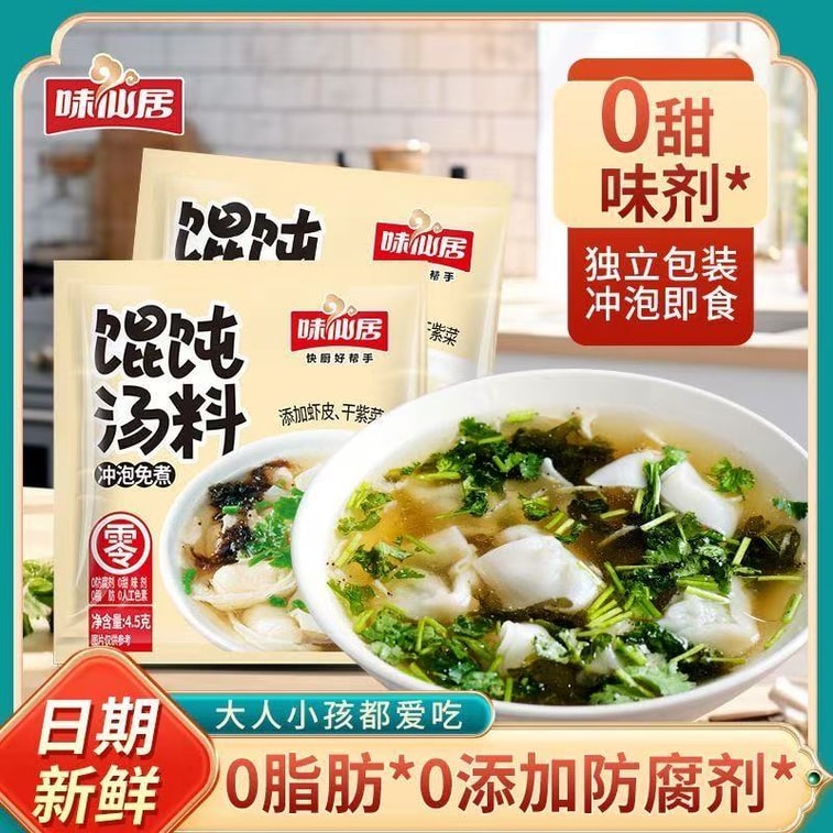 Weixianju [Wonton Soup Base Pack] Instant Noodle Base Pack (No Additives) Fresh and Delicious Soup 4.5g*20 Packs (90g)