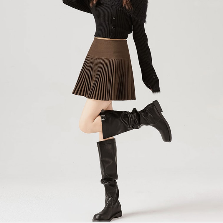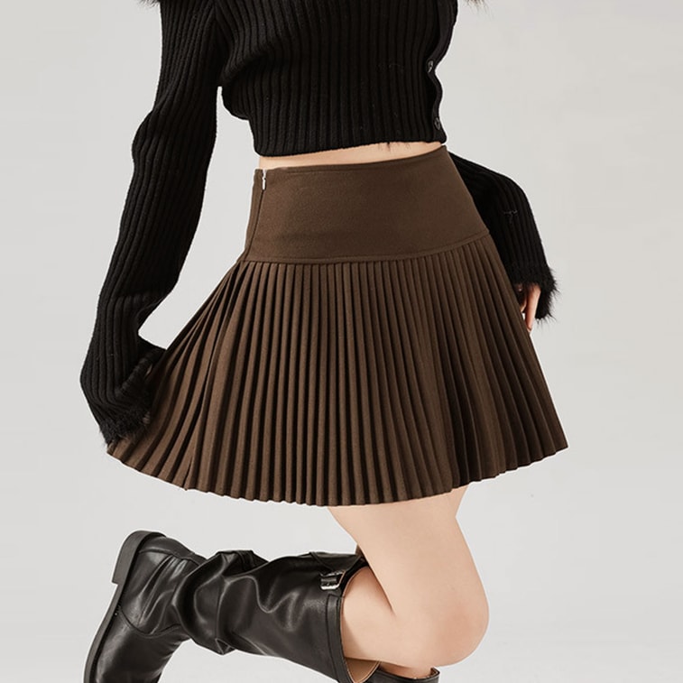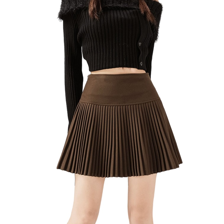 Wool Pleated Skirt Women Autumn Winter High Waist Slim Fit JK Mini Skirt Petite A Line Warm Windproof Midi Skirt Brown XL