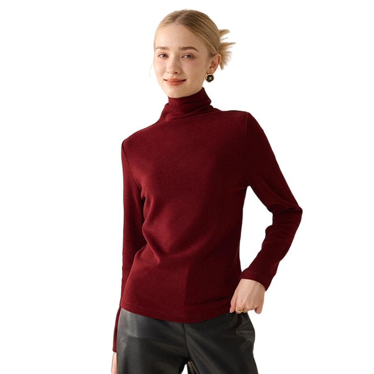 Wool Silk Layering Turtleneck Top, German Fleece Lined Thickened Thermal Base Layer Ankara Red M