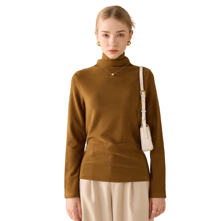 Wool Silk Layering Turtleneck Top, German Fleece Lined Thickened Thermal Base Layer Mocha M