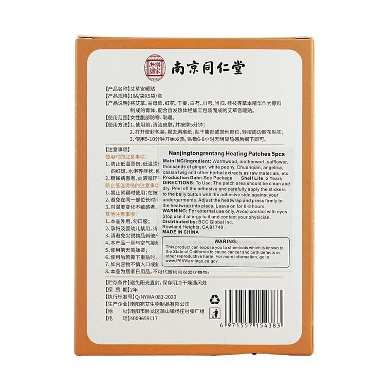 Nanjing Tongrentang Wormwood Warm Patches 5-Patch Set Individual Packaging | Yami