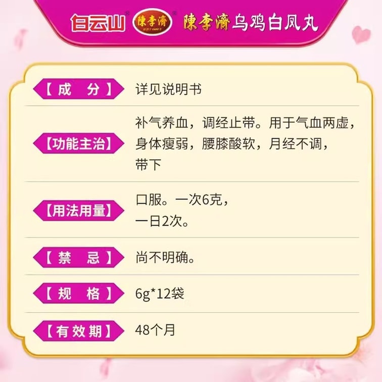 Wuji Bai Feng Pills for Tonifying Qi and Regulating menstruation: 12 bags per box
