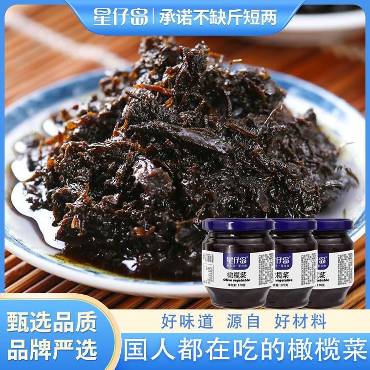 Xingzai Island Bottled Olive Vegetable Side Dish for Rice, Breakfast Mustard Pickled Dish, Authentic Specialty Pickles, Salty Taste, 1 Can 170g