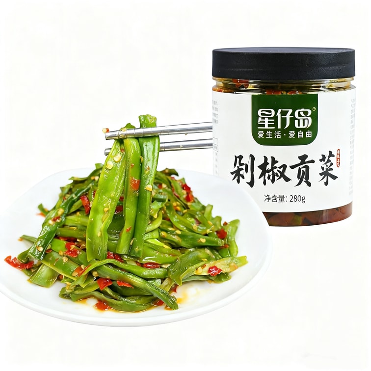 Xingzai Island Chopped Chili Tribute Vegetable Spicy Rice-Ready Dish Instant Pickled Vegetable Mustard Cabbage Jarred for Rice or Noodles Appetiser 1 Bottle 280g