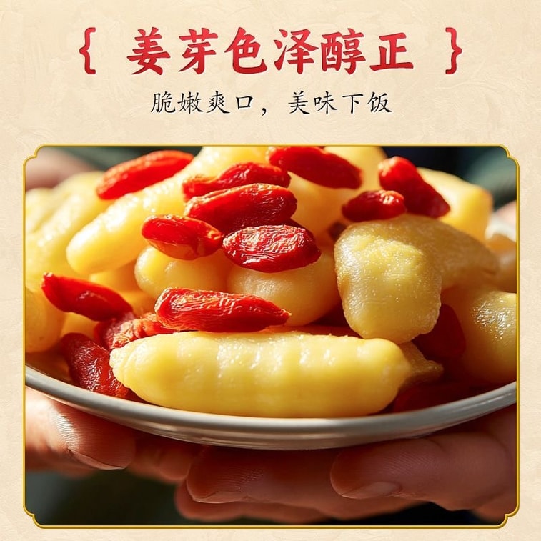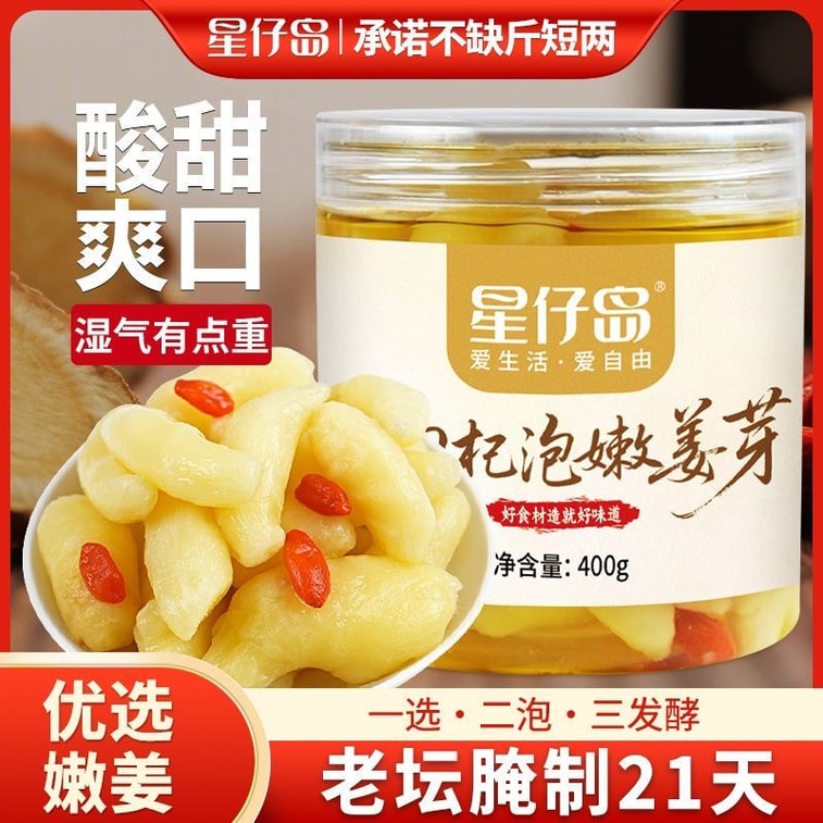 Xingzai Island Goji Berry Soaked Young Ginger Buds 0 Fat Canned Sauce Pickled Vegetables Traditional Pickled Crisp and Tender Side Dish Ready-to-Eat Pickles 1 Bottle 400g