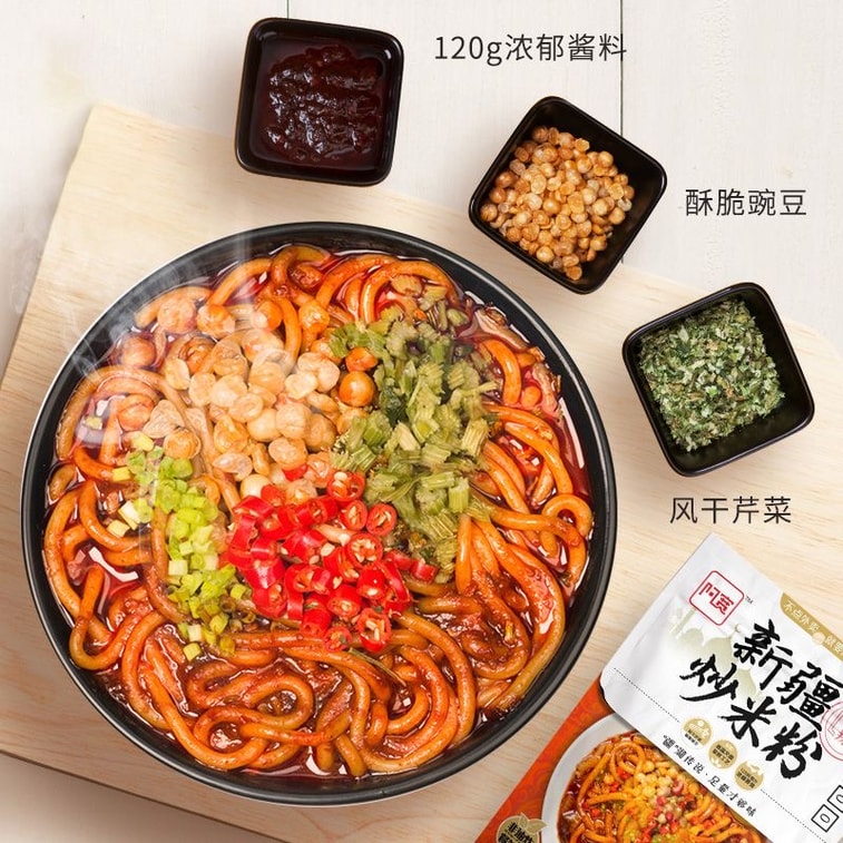 Xinjiang Fried Rice Noodles Extra Spicy Spicy Thick Rice Noodles Dry Mixed Rice Noodles 330g*1 Bag Instant Ready-to-Eat Convenient Fast Food