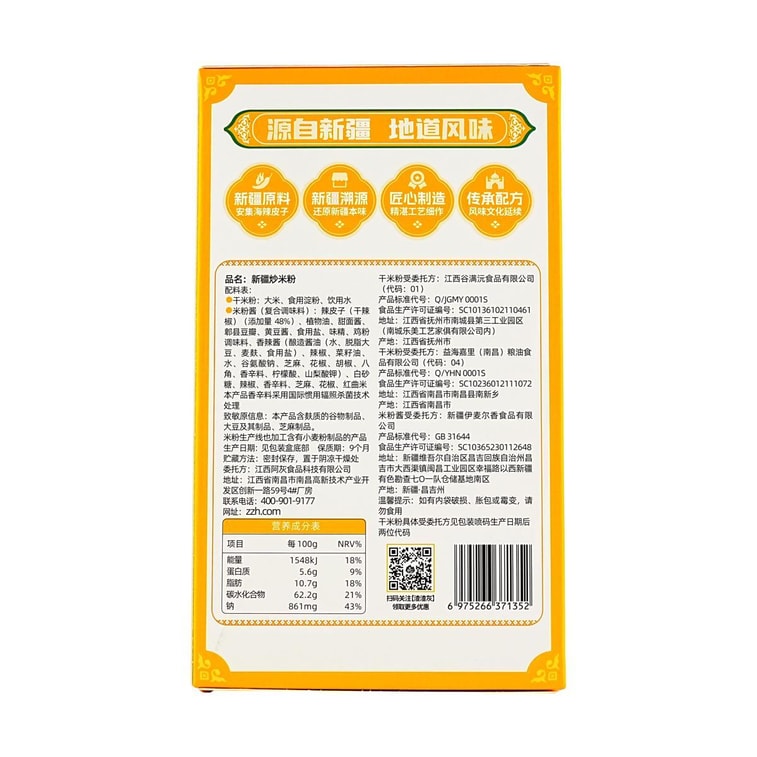 Xinjiang Stir-Fried Rice Noodles,Classic Flavor Mild Spicy,7.41 oz【Yami Exclusive】