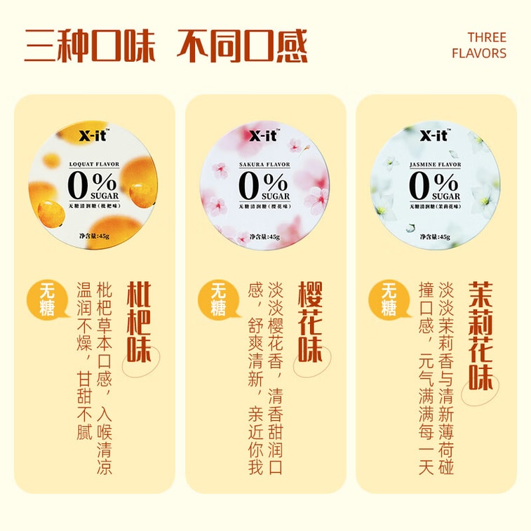 XIT Herbal Throat Candy 45g*3 Sugar Free 0 Fat Minty Refresh