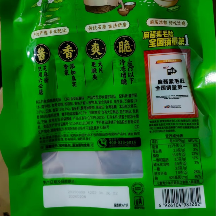 | Flavor | Soybean paste, coriander-flavored seasoning |