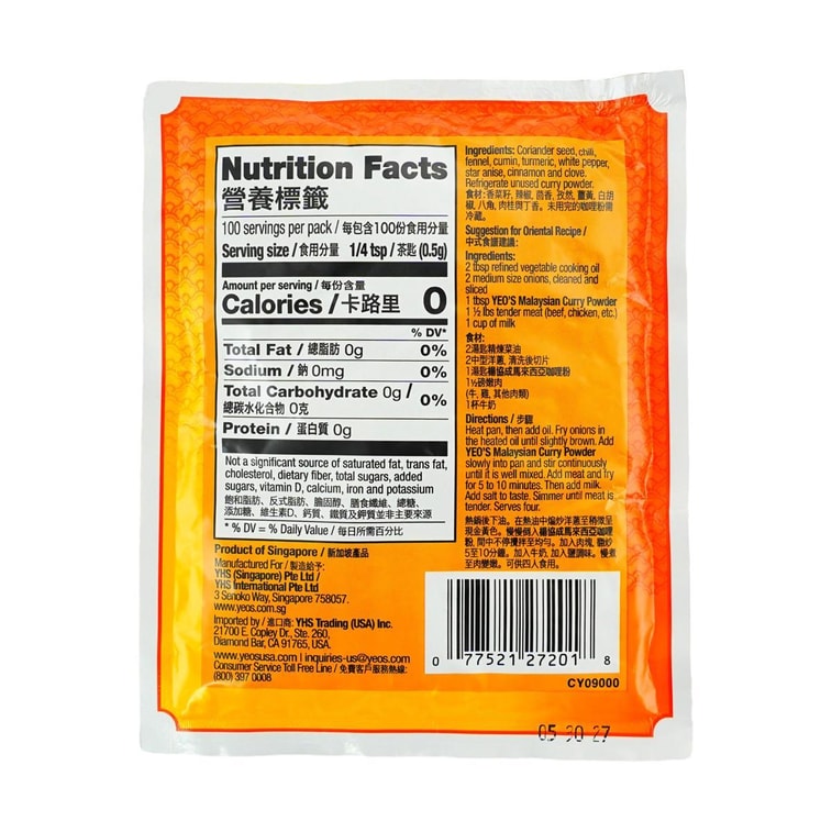 YEO’S Malaysian Curry Powder Poudre De Curry is an authentic powder perfect for making a Malaysian curry at home. It is delicious and very flavorful.