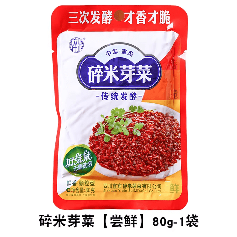 Yibin Crushed Rice Sprout Vegetables, Authentic Sichuan Specialty Side Dish, Specialty for Spicy Noodles and Chongqing Noodles, Preserved Vegetables 80g*2 Bags | Yami