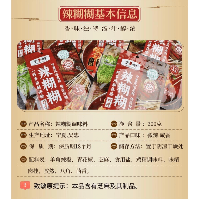 Yu Xiaoxian Ningxia Yinchuan Spicy Paste Base, Dry Ingredients, Dried Chili Powder, Skewer Hot Pot Spicy, 220g*1 Bag