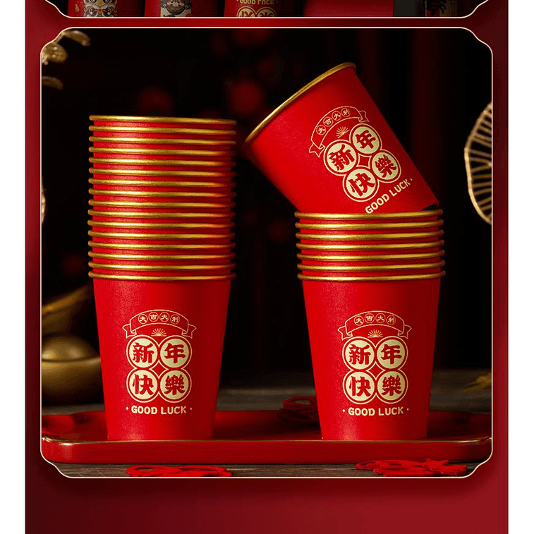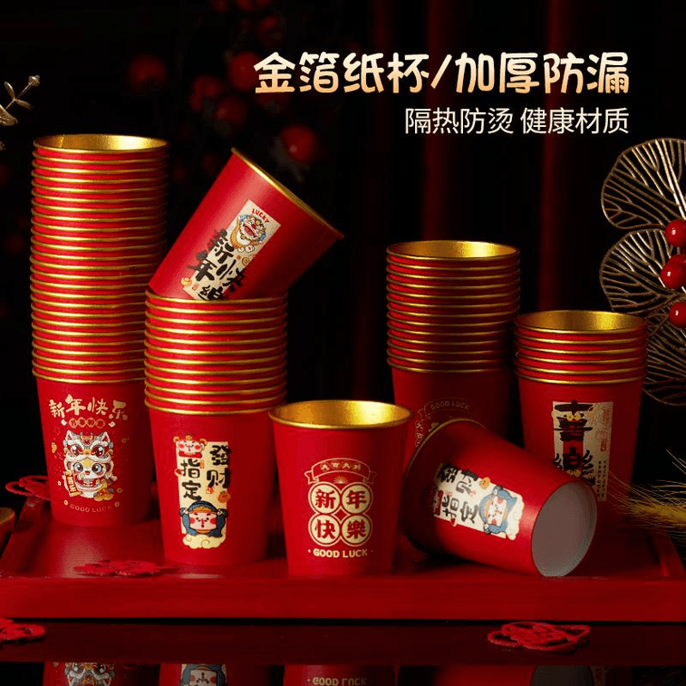 Yue Xiao Seven New Year Disposable Paper Cup 2025 Snake New Year Celebration Home Happy New Year 50 *1 Bag | Yami