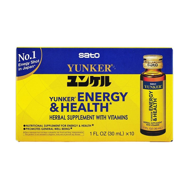 YUNKER Energy+Health Supplement Drink with Vitamins 30ml x 10 bottles