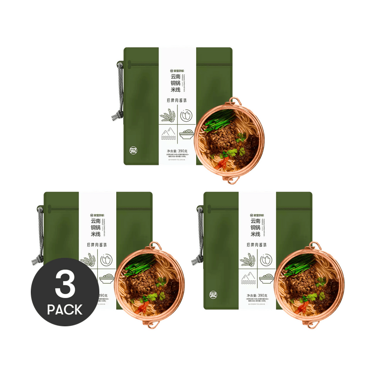 Yunnan Copper Pot Rice Noodles , Signature Vegetarian Meat Sauce Flavor ,13.75 oz *3【3 Packs】
