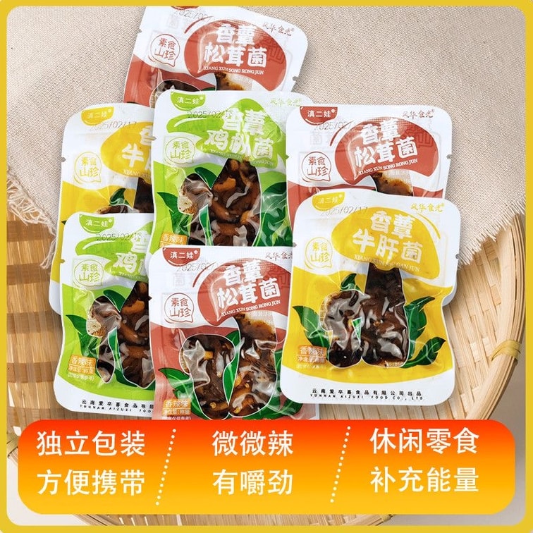 Yunnan Specialty: Ji Cong Mushroom, Porcini, Matsutake, Mixed Mushroom Snacks *1 Bag (8 Packs) About 150g