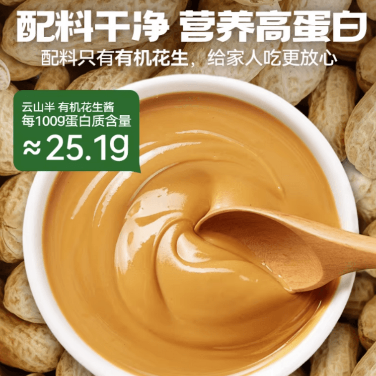 Yunshan Semi-Organic Peanut Butter 100% No Additives High Protein Spread 200g*1 Jar