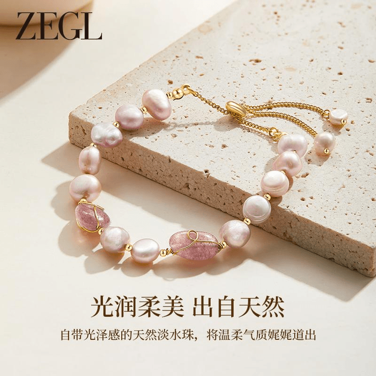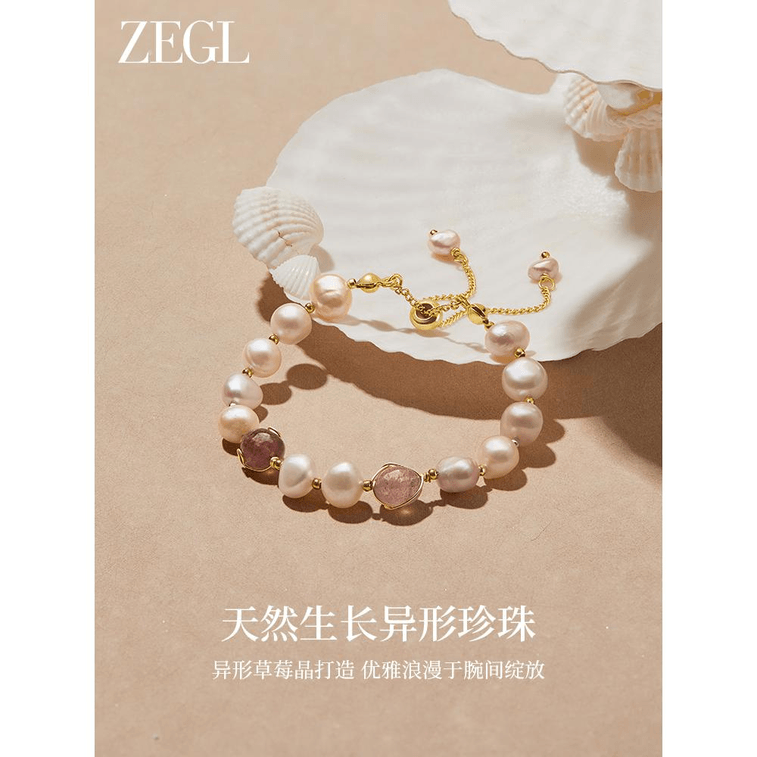 Zegl Baroque Freshwater Pearl Bracelet Hand String For Girls, Light Luxury, Niche Design, Strawberry Crystal Beads * 1