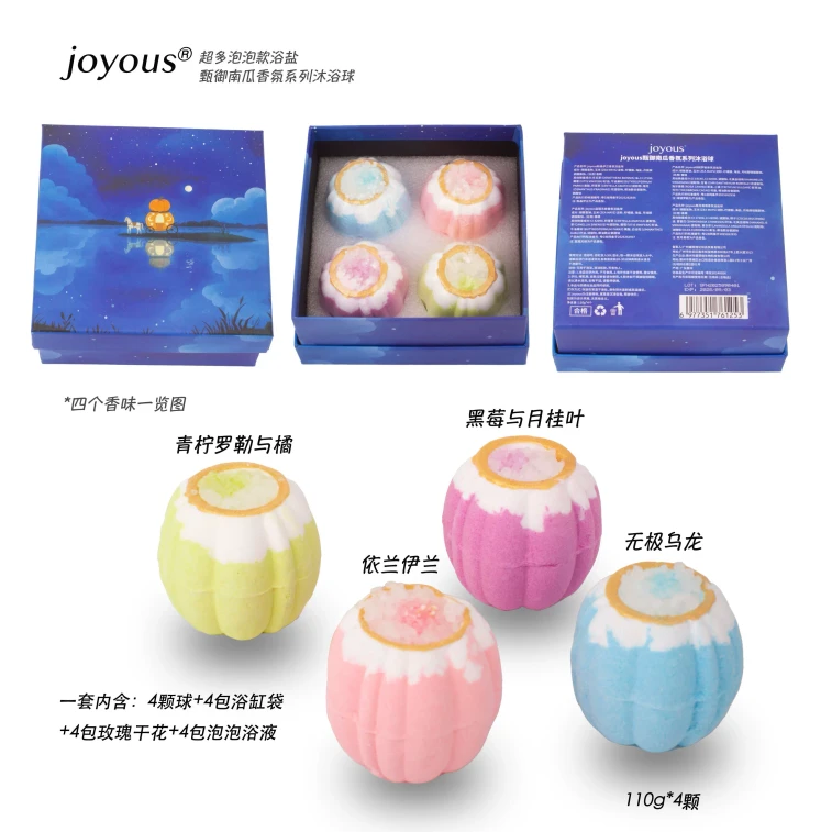 Zhen Yu Pumpkin Fragrance Bath Salt Balls - Four-in-One Gift Set, 110g x 4 pieces [Includes 4 bath bags + 4 packages of rose dried flowers] - Viral explosive bath salt bubbles, moisturizing and hydrat | Yami