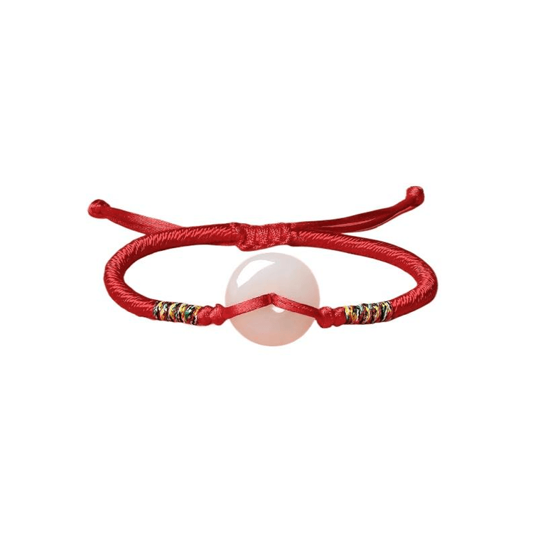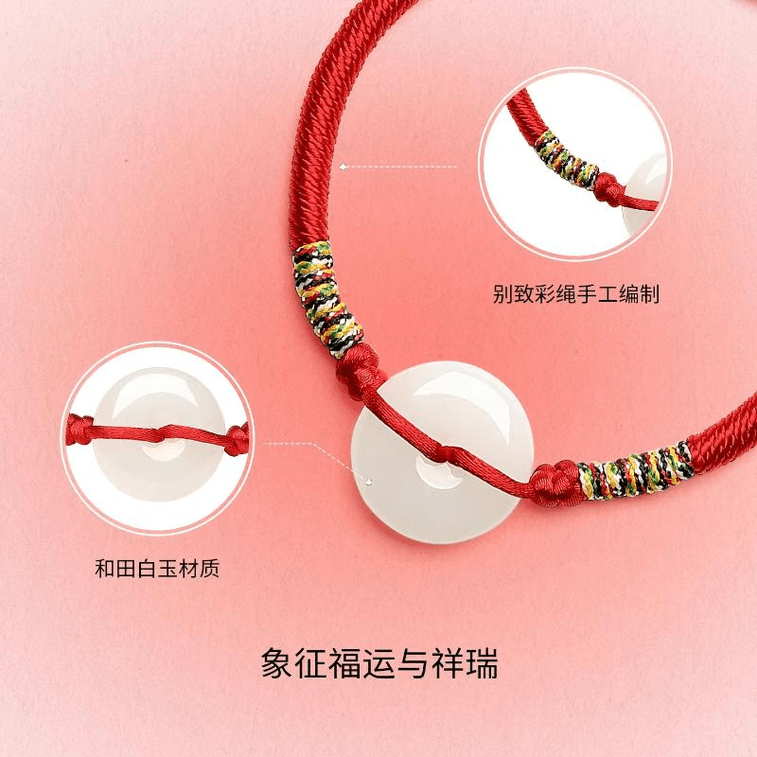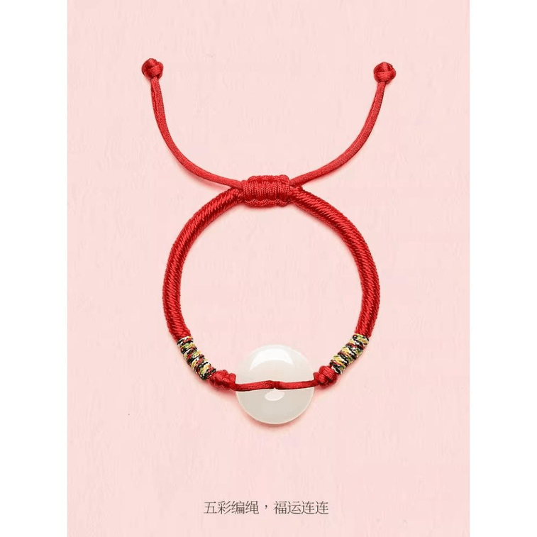 Zhou Liufu Hetian Jade Peace Buckle Bracelet Red Rope White Jade Baby Braided Rope*1piece