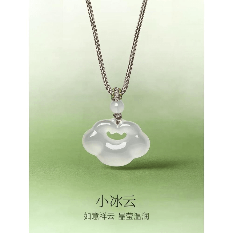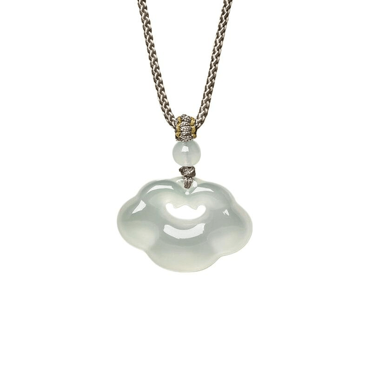 Zhou Liufu Ice Cloud Pendant Ruyi Lock Necklace White Moonlight Chalcedony New Year Gift*1piece
