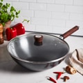 This fast-heating, 12-inch Chinese Wok is ideal for everything from beef and broccoli to deep-fried chicken cutlets. Featuring thin, high curved sides and a thick, flat bottom, it’s the ideal cookware for high-heat cooking. The tempered glass lid lets you monitor your food as it cooks while the stay-cool, walnut handles are designed for maximum maneuverability. And the stainless-steel hanging loop makes it easy to store your wok when you’re through cooking.