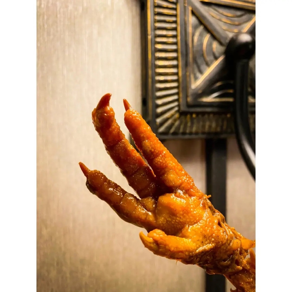 它的酱香味真是相当浓郁,感觉卤了无穷久,皮酥肉烂,各种香料混合的香气简直让人垂涎欲滴。赠送一个餐盒和消毒纸巾。虽然爪子还比较大,但是实在是不过瘾啊。。。还是学一学怎么能自己卤出来吧。
