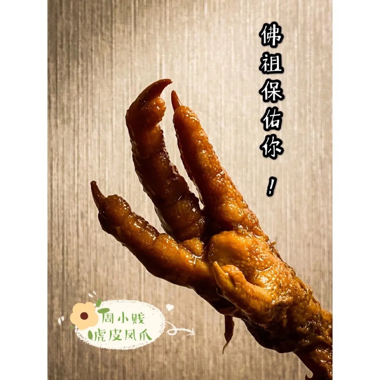 周小贱这款虎皮凤爪真是太太太好吃了,恨不得一次吃十盒。。。然而,吃完十盒基本就要吃土了。毕竟一盒要5.49,每盒有三只。。。。