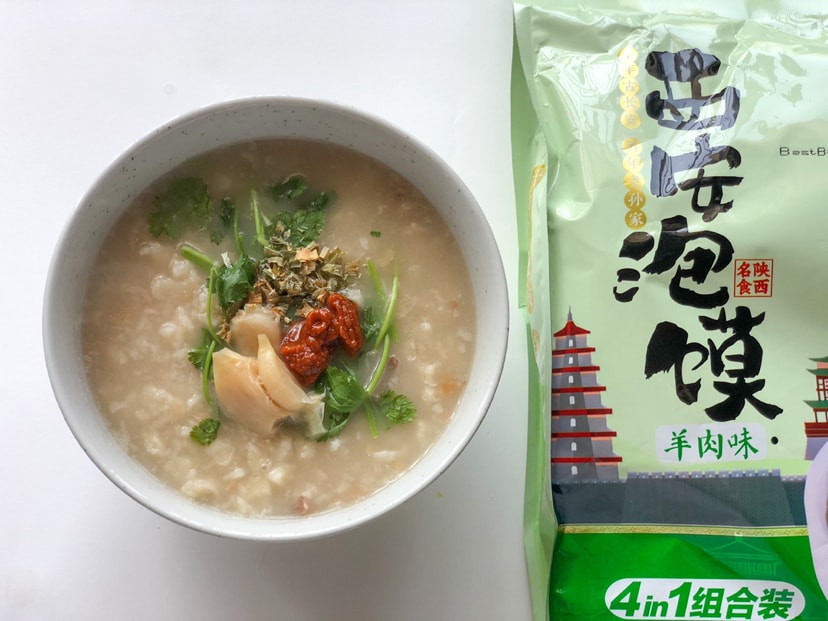 I had this once in Xi'an in my childhood, and can't forget about it. There are 6 items in the package, the bread slices, soup base, chili sauce, oil, dried veggies and sweet pickled garlic. It's almost the same flavor with the one I had, very authentic.