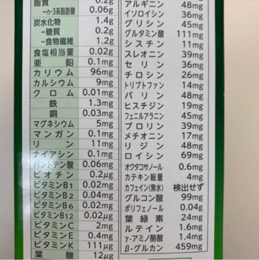 Please see attached picture 4, the nutrients include folic acid, vitamin B6, magnesium, iron, potassium... This product is made in Japan, I can only read a few sentences in Japanese, I believe you can google "young barley" nutrients " and you will be amazed it's worth it!!!