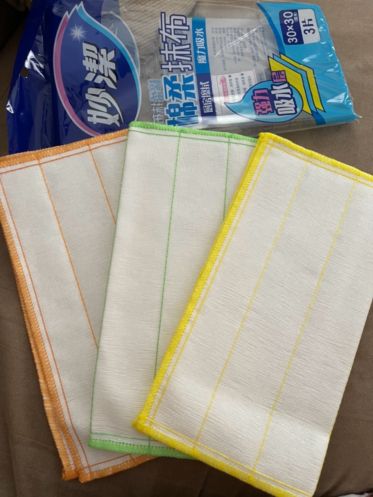 # 厨房必备神器 # 我家厨房每天使用的妙洁棉柔抹布➡️有着强力吸水层,无纺布夹层设计,使抹布手感柔软,好吸水。 两边蔬油网,轻松去除油污,好清洗而且还十分耐用! 一直习惯用这种抹布就是我的厨房必备神器👍