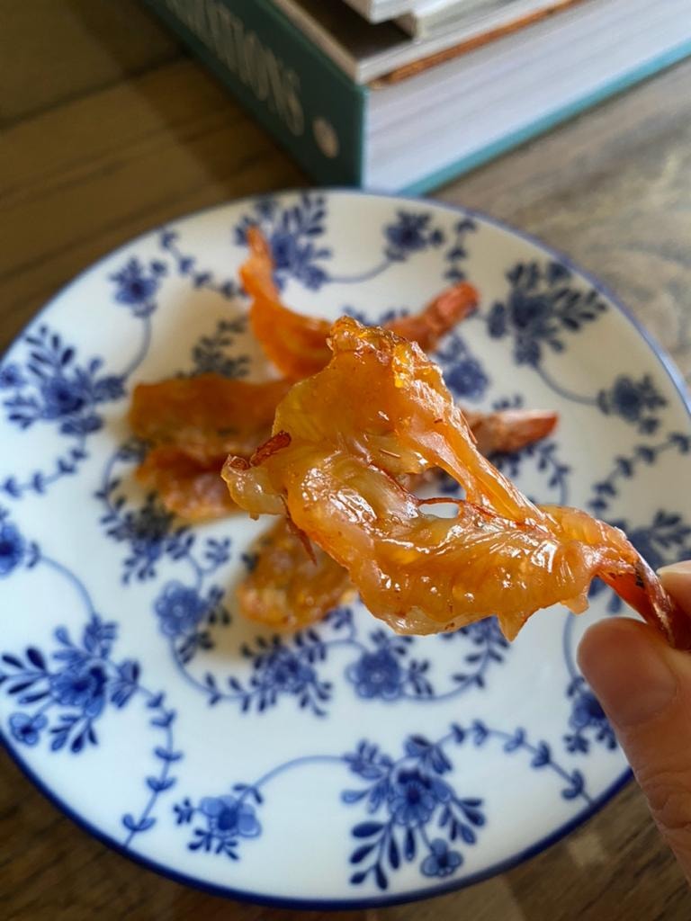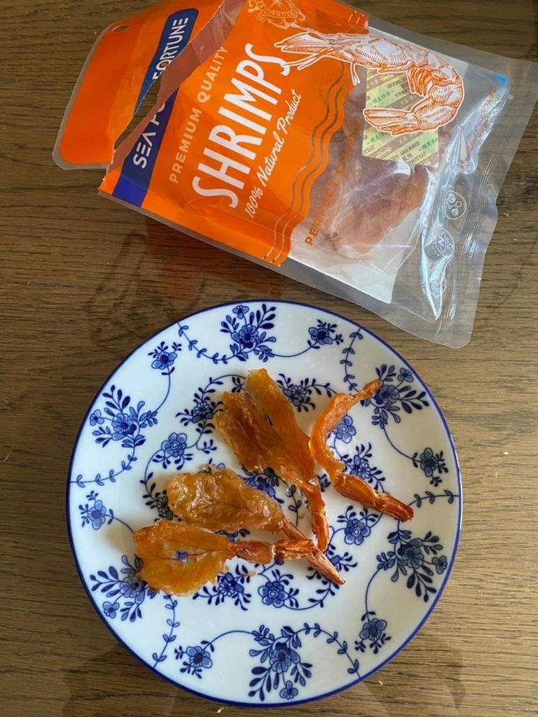 闻起来很香,但吃起来偏甜,而且肉质比较硬,不太好咬。嚼久了能感受到虾肉的鲜味,一包分量不多,尝尝新鲜还好,作为零食的话适配度一般!