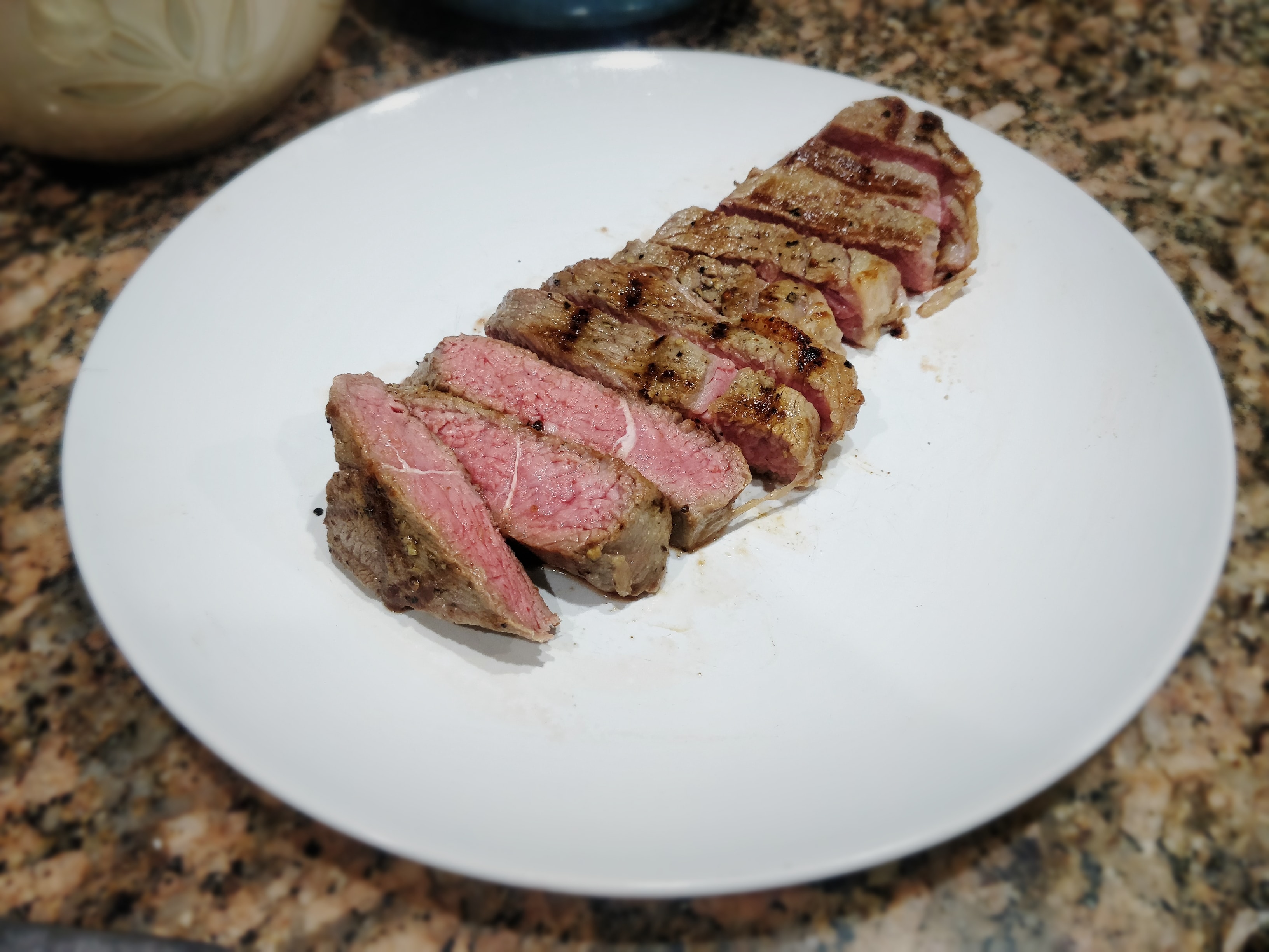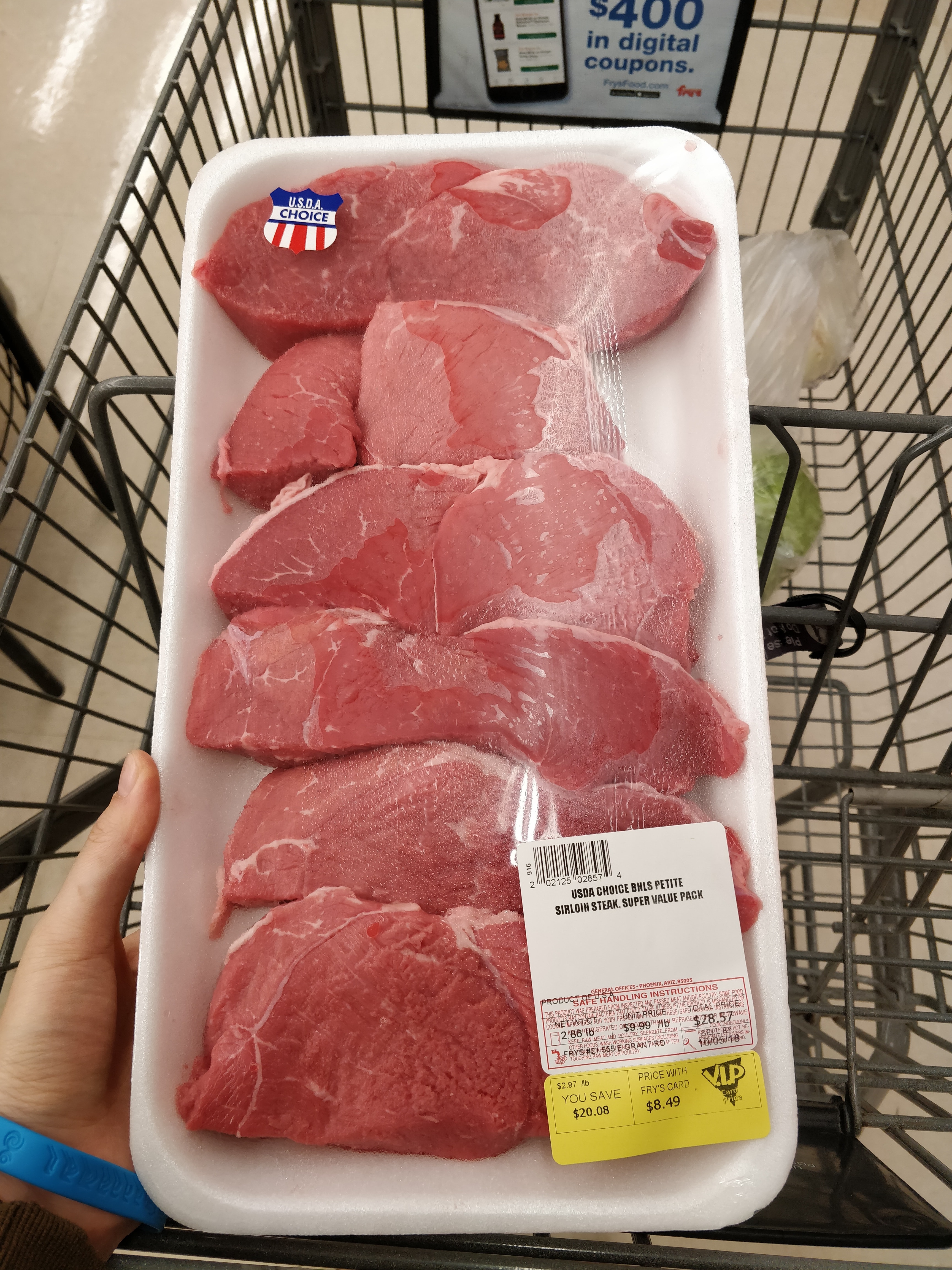 今天晚餐的牛排,因为去超市看到了一整板的牛排打折,虽然我平时不太吃Sirloin但是这么便宜还很新鲜不买白不买嘛!!