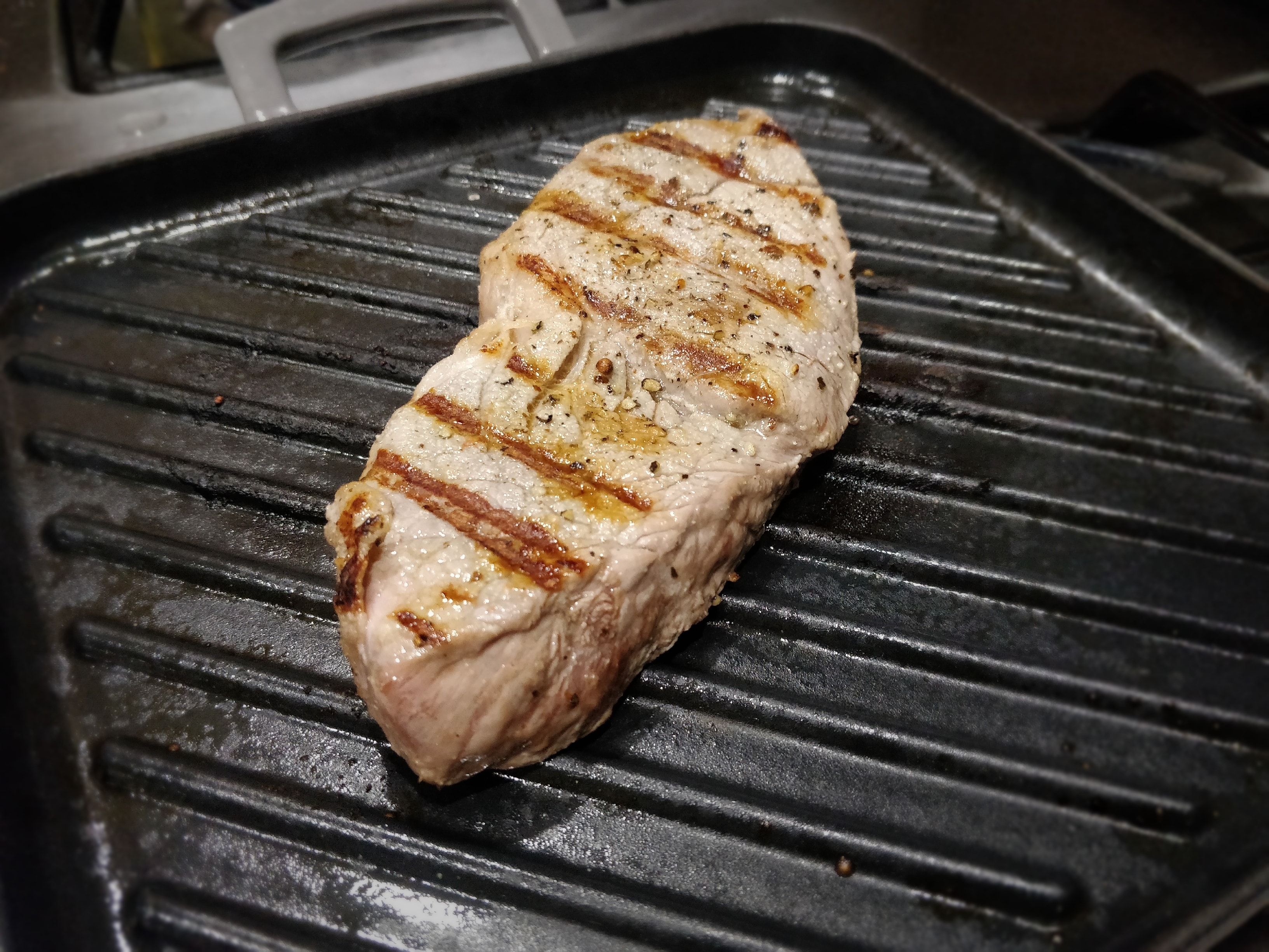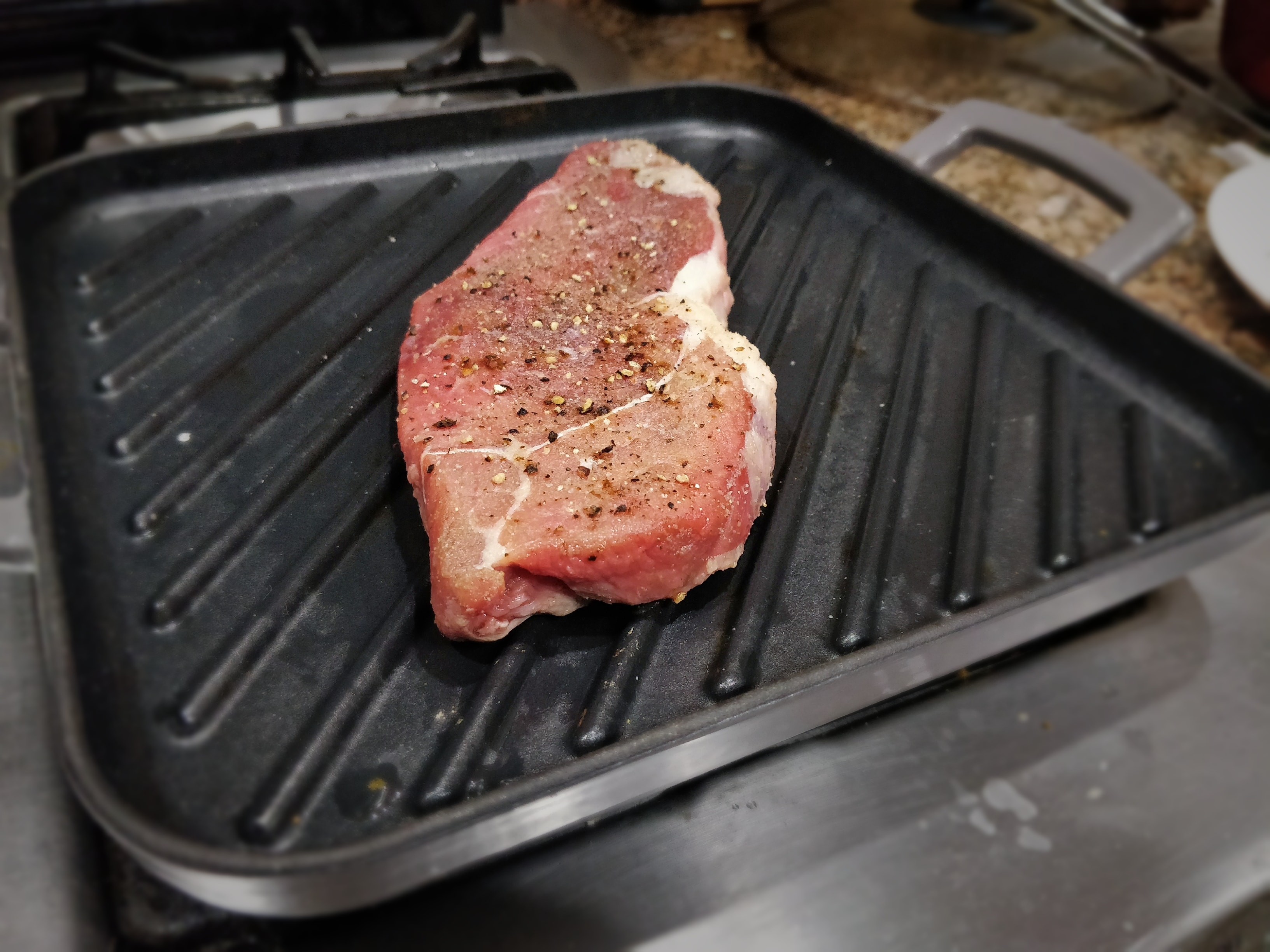 I also deliberately took out my steak pan, poured a little oil in the pan, and made sure the pan was very hot before placing the steak.
