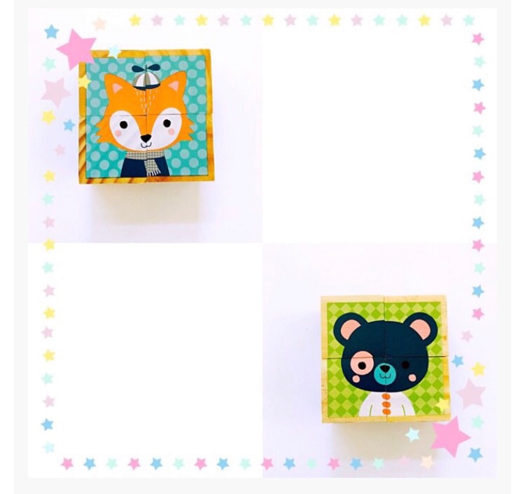 🌟四块积木,六个面都有图案!可以组合成六个不同的小动物!🐶🐰🐻🦊
