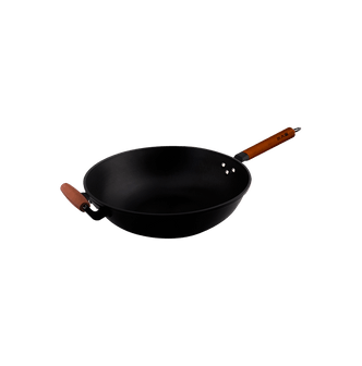 Chinese Traditional Iron Round-Bottom Wok with Ring 34cm