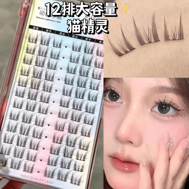 【中国直送】Mengji Shangpin 12列大容量コミックつけまつげ 猫エルフ MX06 ナチュラルスタイル 10-12mm 2箱