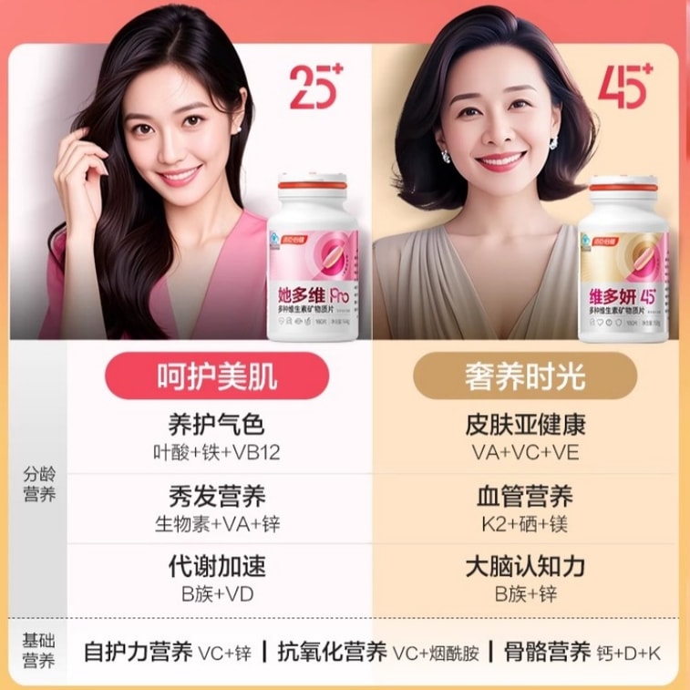 【中国直送】By-Health 25歳以上の女性用マルチビタミン二層錠 複合ビタミンB、ビタミンC、カルシウム、鉄、葉酸 160錠