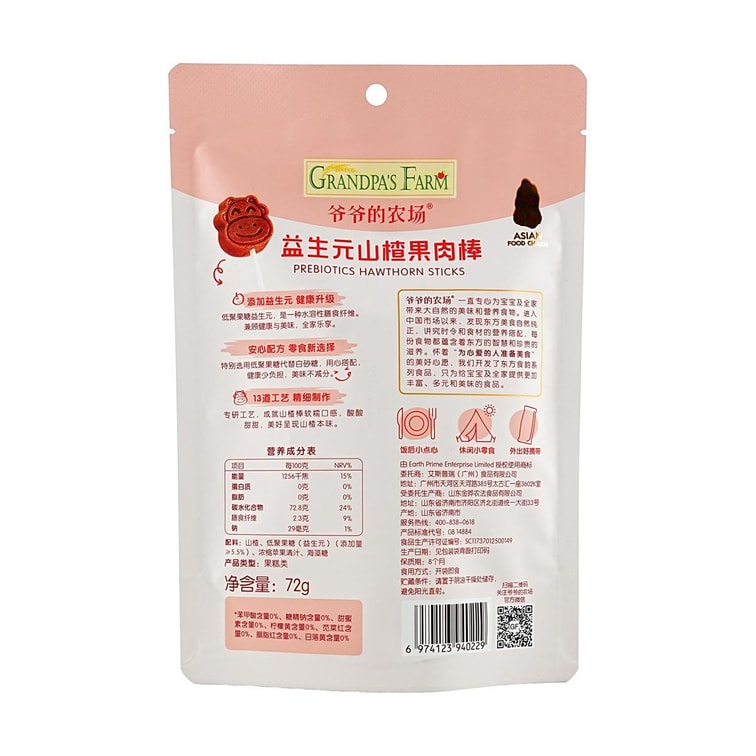 プロバイオティクスとプレバイオティクスのホーソンフルーツバー 72g