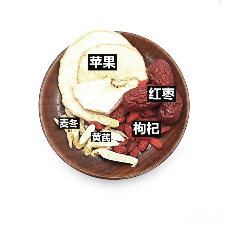 材料:苹果干、黄芪、麦冬、枸杞、红枣