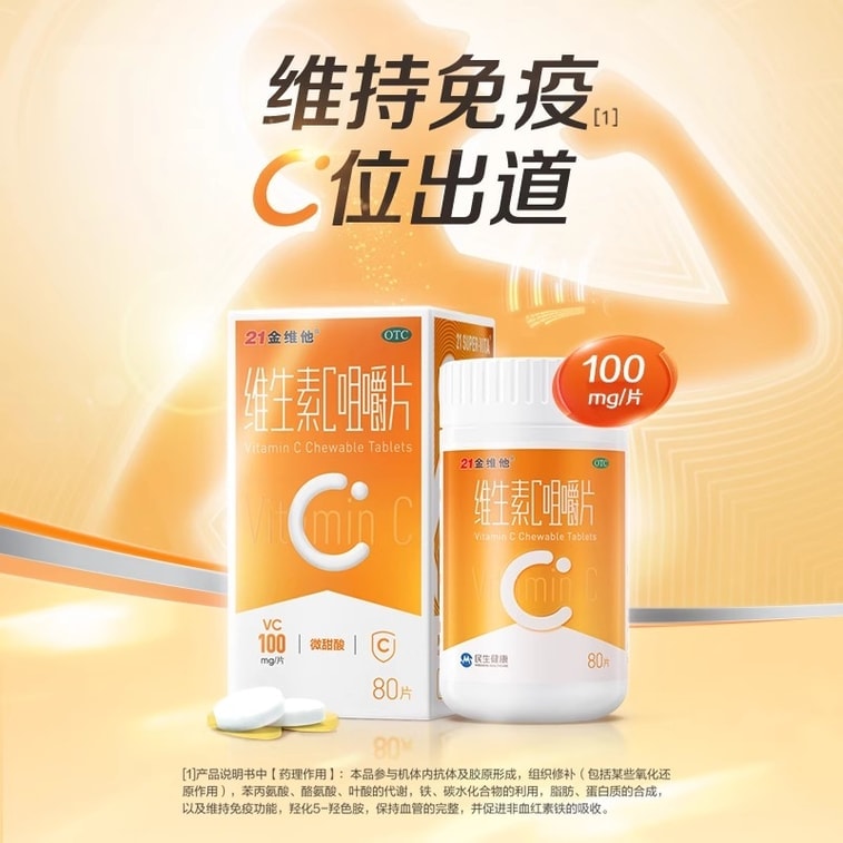 【中国直送】21世紀マルチビタミンCチュアブル錠 大人と子供用ビタミンCタブレット 体力強化と免疫力アップ 80錠/箱