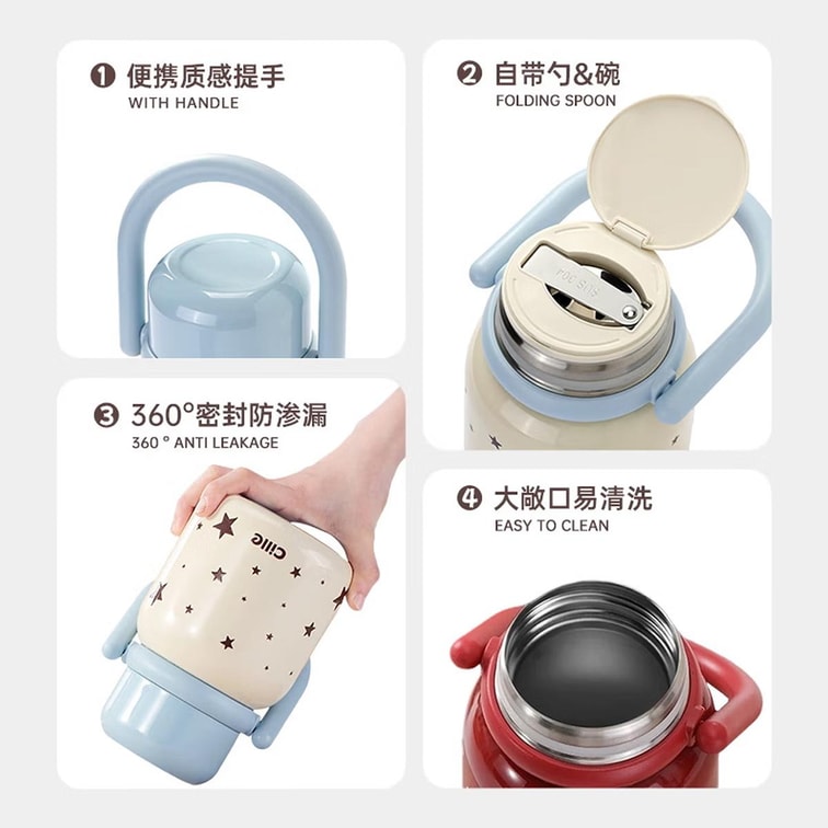 ポータブル保温フードジャー 930ml スターブルー 316ステンレススチール スープ用スプーン付き