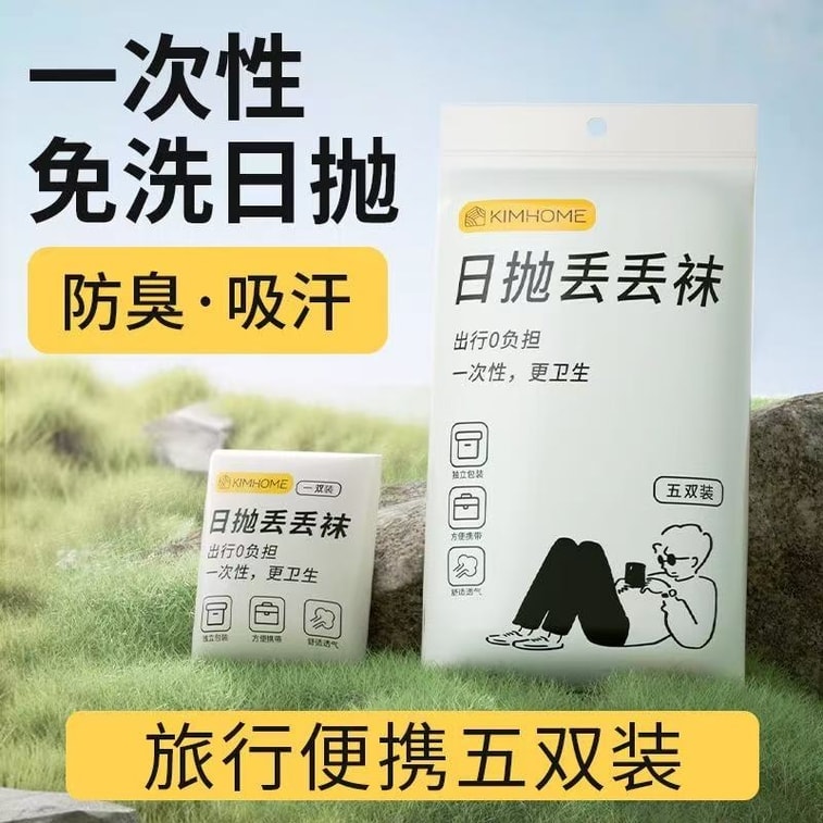 韓国発 Kim and Kim 使い捨てソックス - 旅行や出張に欠かせないアイテム。通気性と携帯性に優れたデイリー使い捨てソックス。ホワイト。5足入りパック。フリーサイズ。[外箱はランダム発送]
