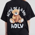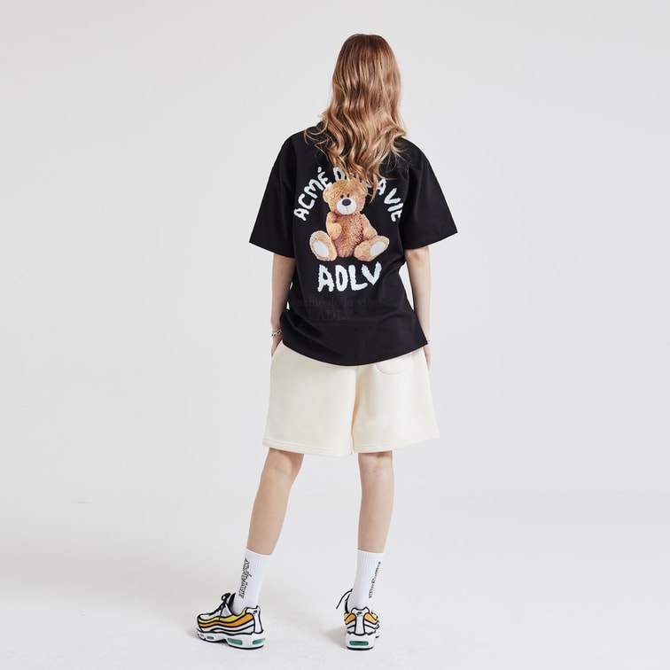 acmé de la vie【カナダ/韓国直送】【ソン・ヤシュアンと同じスタイル】漫画人形プリント特大カップルスタイルテディベア人形半袖-ブラック1